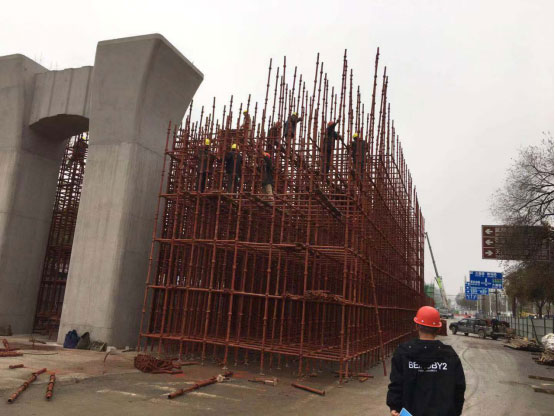 本項目全長1204.559m,其中橋梁全長684m,上跨武陵山大道節(jié)點274m,(4跨:55m+82m+82m+55m),為變高度全鋼箱梁;上跨天崇路節(jié)點橋梁110m(3跨:30m+50m+30m),為變高度預應力混凝土連續(xù)梁;西側(cè)引橋長300m(10跨:10×30m),為等高度預應力混凝土連續(xù)梁。子午橫斷面為50m,橋梁橫斷面為17.5m,該道路為城市主干道,雙向8車道,設(shè)計車速50km/h,橋梁使用年限100年,車行道采用瀝青混凝土路面,設(shè)計合理使用年限15年。