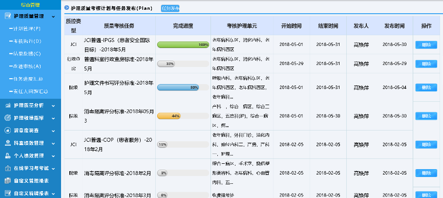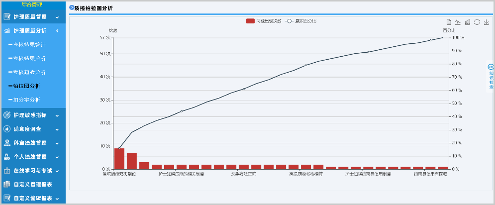 針對(duì)護(hù)理質(zhì)量管理重點(diǎn),支持自定義質(zhì)控表單,使用評(píng)分、扣分等多種考核方式,電子化護(hù)理質(zhì)量考核、持續(xù)跟蹤記錄,并可以用于統(tǒng)計(jì)分析。