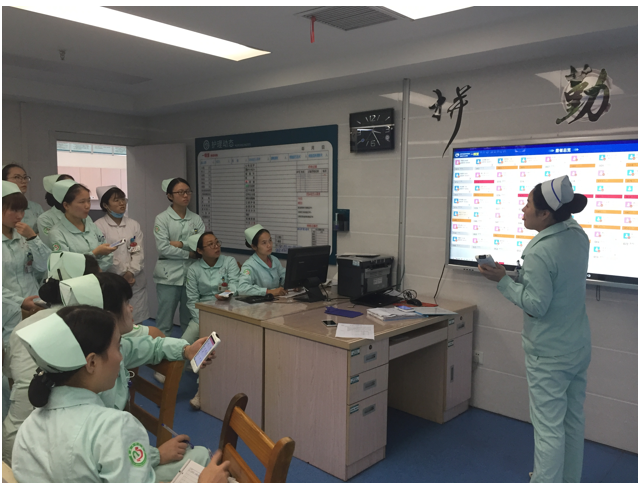 護(hù)理交互大屏通過(guò)對(duì)臨床護(hù)理信息和醫(yī)療物聯(lián)設(shè)備信息的抓取、整合、分析、重組,實(shí)現(xiàn)信息可視化顯示并搭建人機(jī)交互的平臺(tái)。該平臺(tái)不僅能從傳統(tǒng)的HIS工作站和移動(dòng)護(hù)士工作站中抓取臨床護(hù)理信息,還可以將臨床護(hù)理信息進(jìn)行解析、分類、結(jié)構(gòu)化顯示。交互大屏集成了臨床護(hù)理中頻繁使用的信息模塊,如患者電子概覽板、排班總覽、值班報(bào)告、工作任務(wù)、健康宣教等功能。