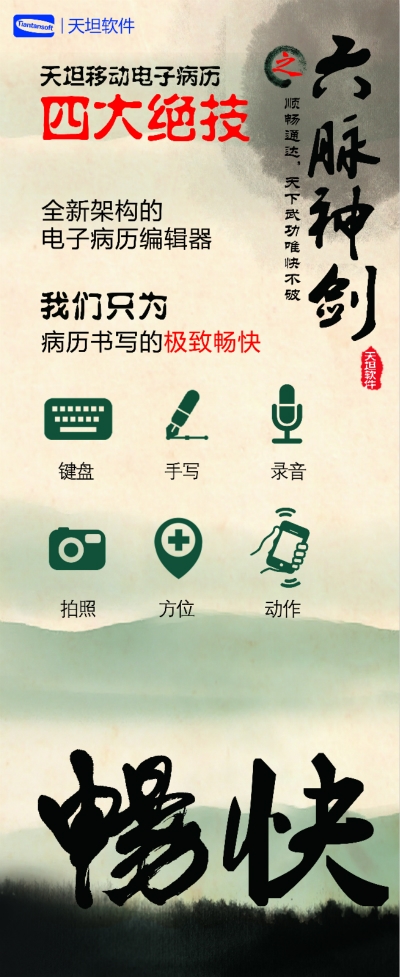 在全球范圍,向移動互聯網推進的浪潮已經勢不可擋, 醫(yī)療行業(yè)如其他行業(yè)一樣,要想更好地發(fā)展,必須融入這個浪潮。天坦軟件通過多年的努力,打造出“天坦移動電子病歷”,加強了醫(yī)院管理效率和力度,避免醫(yī)療差錯和事故,改善醫(yī)患關系,減少醫(yī)患矛盾,提高醫(yī)護人員的工作效率,提高醫(yī)療服務響應能力,隨時隨地為患者服務。