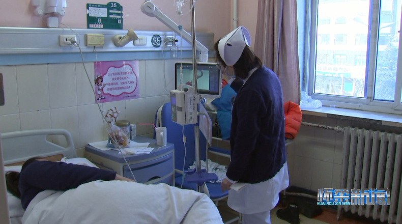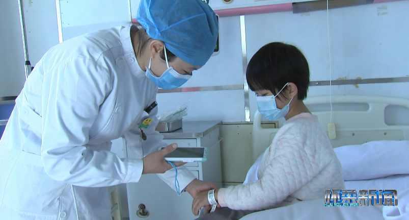 在兒科病房內(nèi),前來換藥的護士打開床旁照護系統(tǒng),為小患者挑選喜歡的動畫片,在確認患者身份后用手持PDA掃描患者腕帶上的二維碼,識別病例等信息并登記換藥情況。有了床旁照護系統(tǒng)的動畫轉移注意力,小患者不在緊張、害怕,整個換藥過程十分平穩(wěn)、迅速。